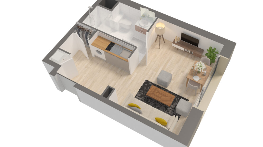 Appartement T1 neuf de 24.99m², orienté est, offrant un agencement optimal sans aucune perte d’espace. Baigné de lumière grâce à de multiples ouvertures, il se distingue par sa façade arrondie au design contemporain. Les volumes sont parfaitement équilibrés, alliant fonctionnalité et esthétisme. Chaque détail révèle des prestations haut de gamme, immédiatement perceptibles dès l’entrée. Une adresse rare, alliant confort, modernité et élégance.